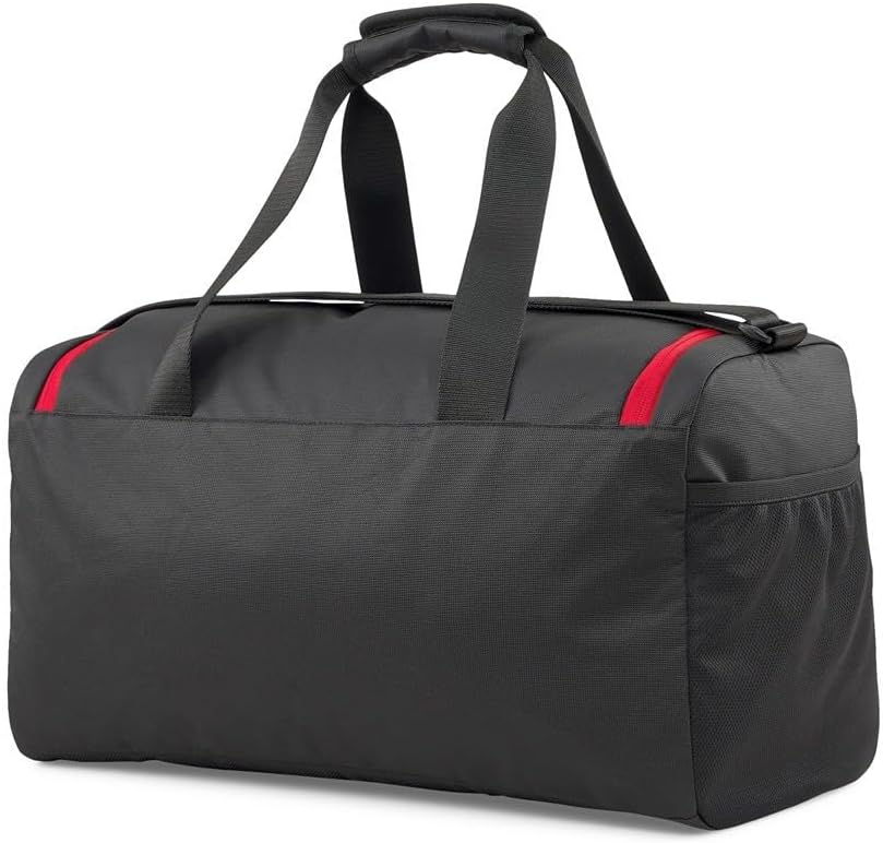 Scuderia Ferrari F1 Team Gym Bag 2023 Designed and engineered by PUMA and Ferrari, the authentic Ferrari team gym bag is the perfect Ferrari luggage accessory carrying all the Formula 1 weekend essentials and makes the perfect gift for any Ferrari F1 fan. The bag comes in a stylish black, complemented by Ferrari ‘Rosso Red’ detailing with the instantly recognizable Ferrari logo front and center. Multiple utility pockets and padded straps mean the gym bag can be worn with comfort for long periods. Ferrari Team logos on front, Color contrast zip detail, Padded shoulder straps, Zip compartments, Material: 100% Polyester. Size: 20x10x7 inches