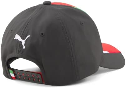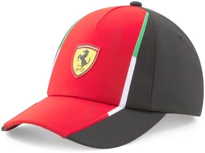 The Ferrari 2023-2024 Cap Essere Racing F1 Team by Puma is a sleek and stylish accessory for any Ferrari fan or racing enthusiast. The cap features the iconic Scuderia Ferrari logo on the side, a symbol of excellence and speed in the world of motorsport.On the back of the cap, an embroidered Puma logo adds a touch of elegance and sophistication, showcasing the collaboration between these two legendary brands.The front and visor of the cap showcase a bold and eye-catching Ferrari Essere Racing graphic design, a symbol of their commitment to pushing the limits of what’s possible on the track.The side and back panels of the cap are solid black, providing a contrasting background to the vibrant Ferrari and Puma logos and graphic design.Finally, an adjustable waistband ensures a comfortable and secure fit, making this cap the perfect accessory for any racing fan looking to show their support for the iconic Ferrari brand.