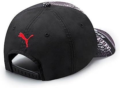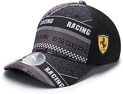 The Ferrari 2023-2024 Cap Essere Racing F1 Team by Puma is a sleek and stylish accessory for any Ferrari fan or racing enthusiast. The cap features the iconic Scuderia Ferrari logo on the side, a symbol of excellence and speed in the world of motorsport.On the back of the cap, an embroidered Puma logo adds a touch of elegance and sophistication, showcasing the collaboration between these two legendary brands.The front and visor of the cap showcase a bold and eye-catching Ferrari Essere Racing graphic design, a symbol of their commitment to pushing the limits of what’s possible on the track.The side and back panels of the cap are solid black, providing a contrasting background to the vibrant Ferrari and Puma logos and graphic design.Finally, an adjustable waistband ensures a comfortable and secure fit, making this cap the perfect accessory for any racing fan looking to show their support for the iconic Ferrari brand.